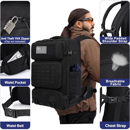 Navy-Grade Sturdiness & Molle System: Constructed from rugged, waterproof military-spec nylon with premium YKK anti-theft zippers. Options modular MOLLE webbing for customizable gear attachment and enhanced tactical versatility.